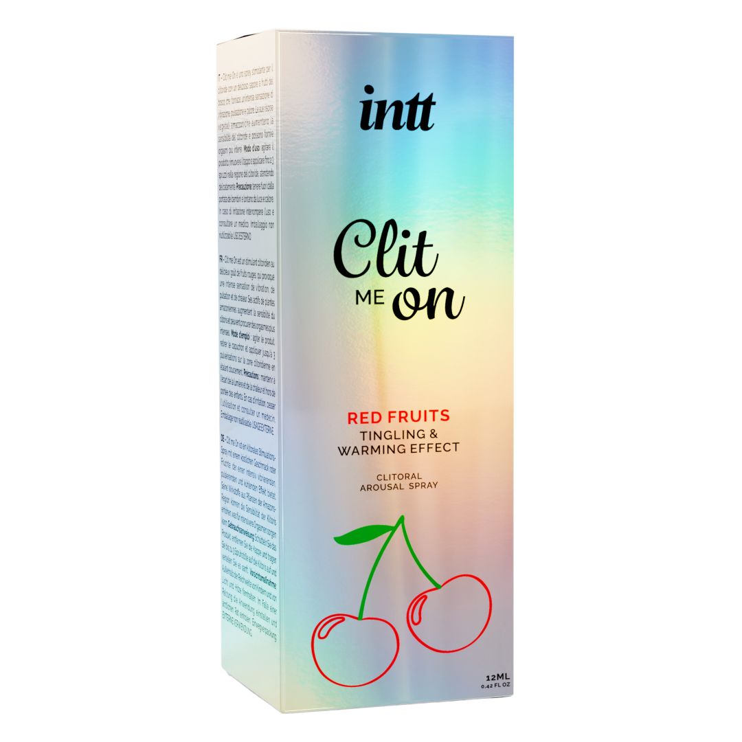 Clit Me On di intt è lo spray eccitante per clitoride che trasforma ogni stimolazione in un'esplosione di piacere. Disponibile in due varianti aromatiche e sensoriali – Peppermint per un effetto freddo e vibrante, Frutti Rossi per un effetto caldo e pulsante – questo spray combina gusto e funzionalità in un prodotto unico.