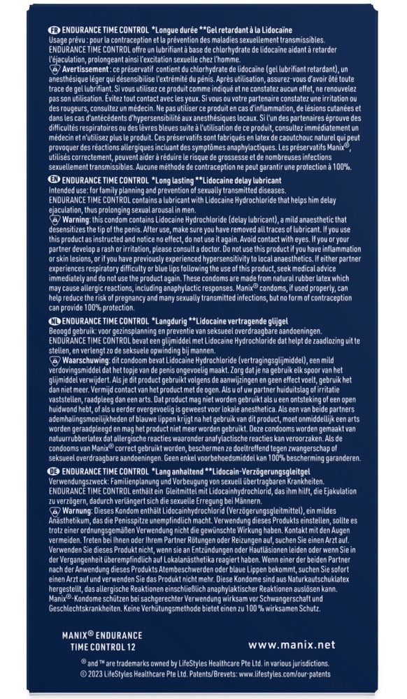 Preservativi MANIX Endurance Time Control – Gel Ritardante alla Lidocaina