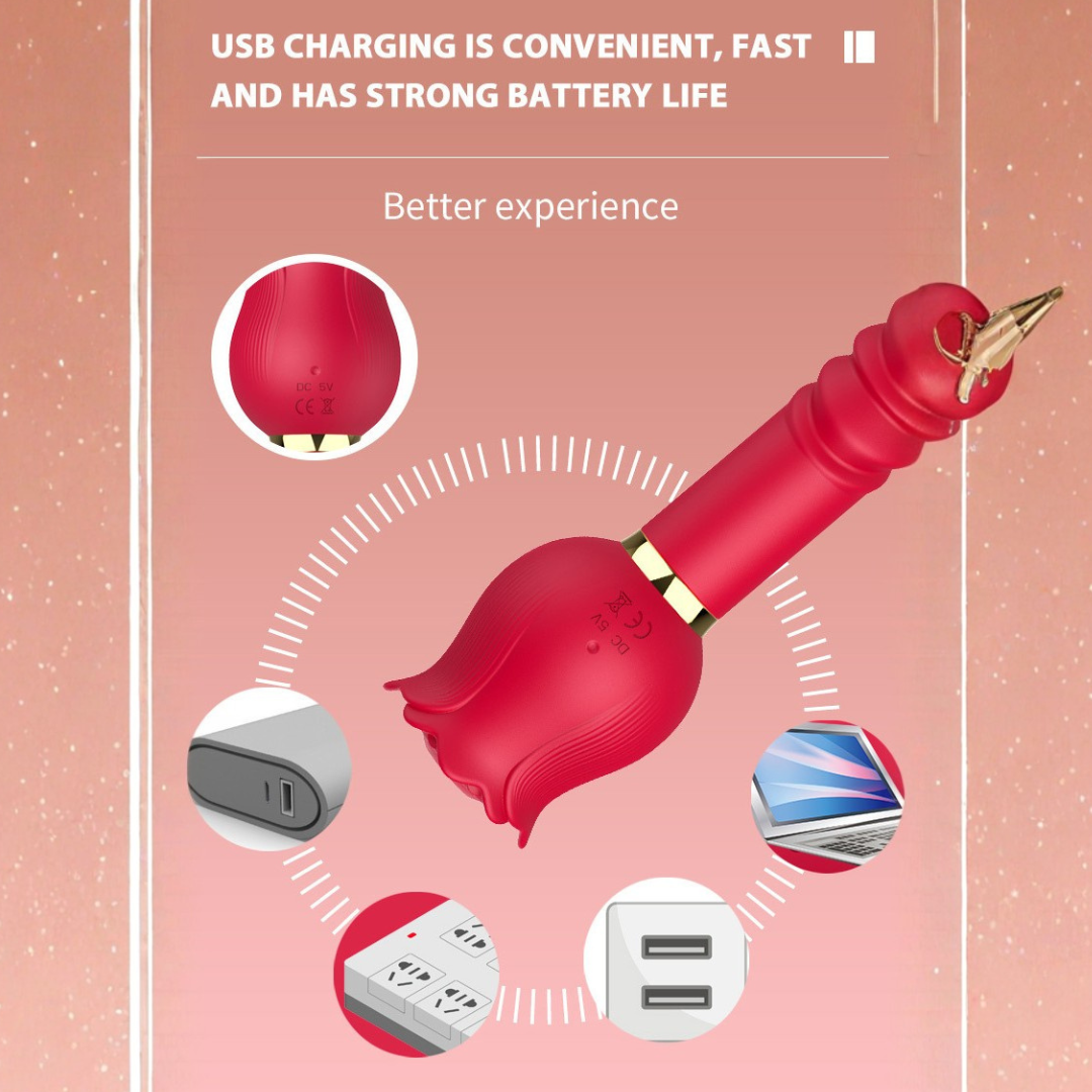 Il Fuck Me Rose di divertity è un sex toy multifunzione che unisce spinta automatica e stimolazione ad aria pulsata in un unico design elegante a forma di rosa.