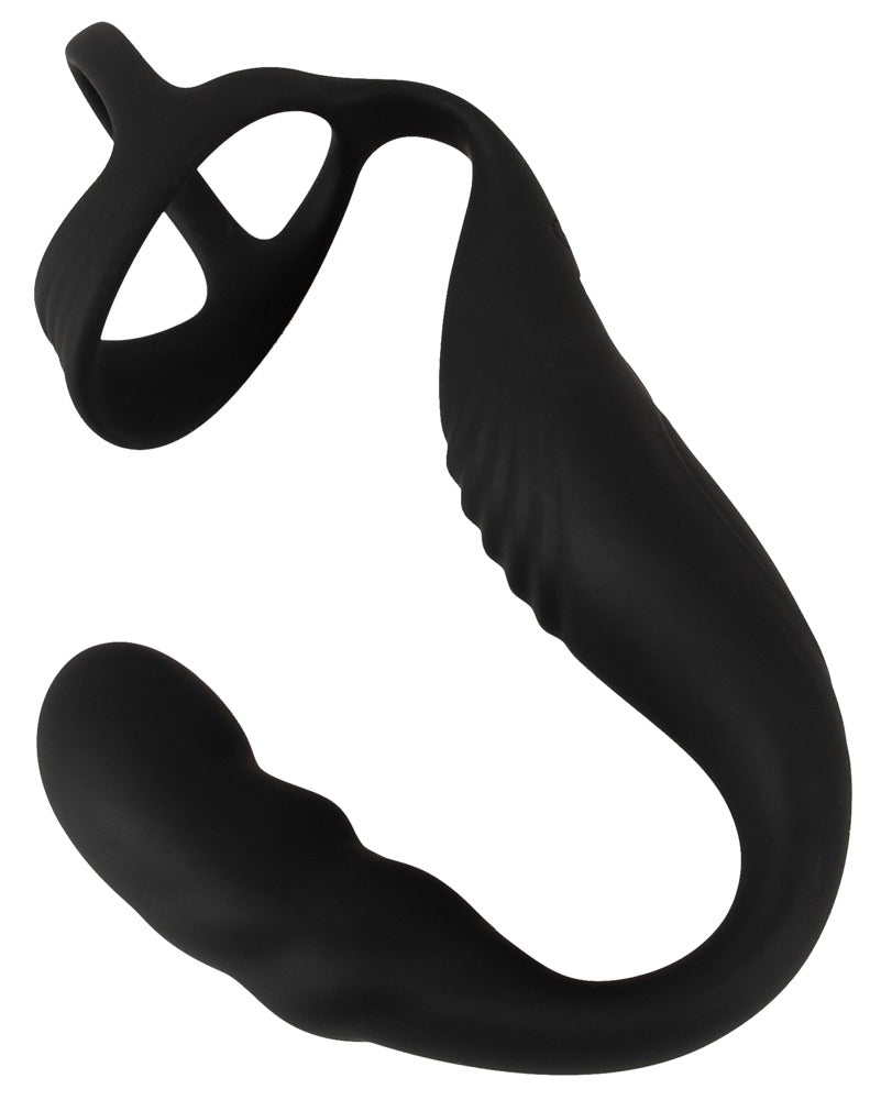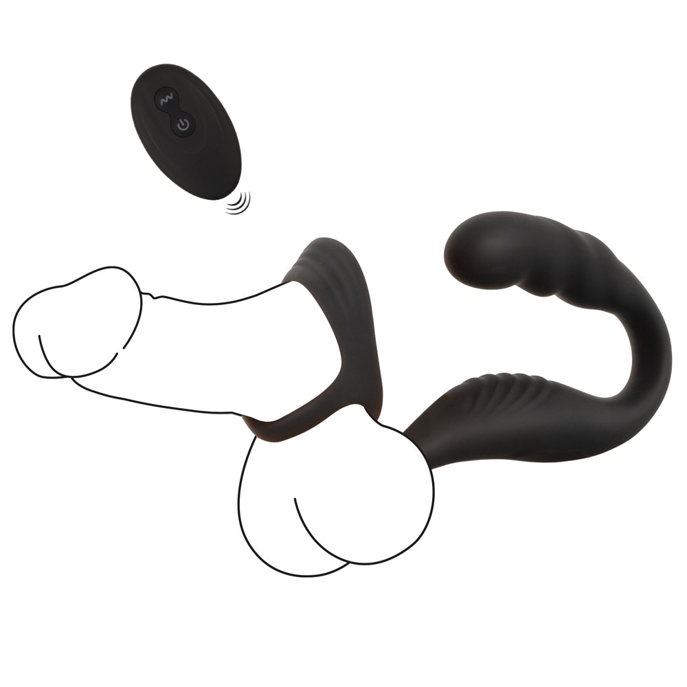 Tripla stimolazione: combinazione di cock ring, massaggiatore perineale e vibratore prostatico per un piacere completo.