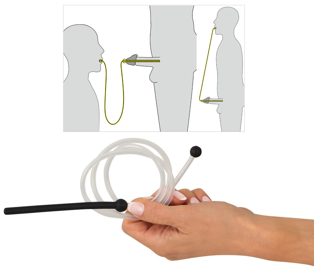 Sarà possibile penetrare la sonda nell'uretra ed indirizzare l'urina direttamente nella bocca (oppure ovunque) mediante il tubicino trasparente removibile.