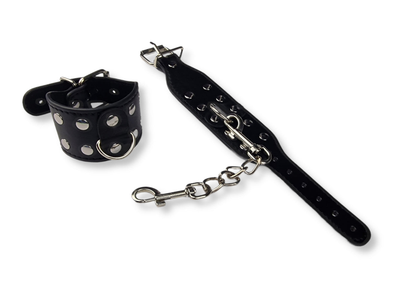 Ogni manetta è dotata di un anello a D per il collegamento con la catena inclusa o con altri accessori da bondage.