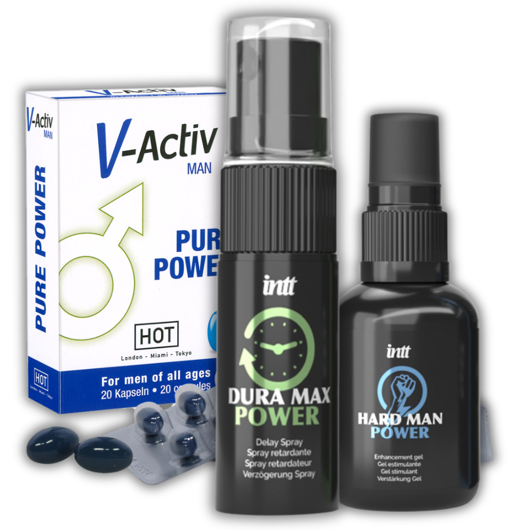 Set Potenza Uomo composto da 1 Spray ritardante, 1 Gel Potenziante Erezione ed 1 Scatola di Capsule Integratore Potenziante Sessuale.