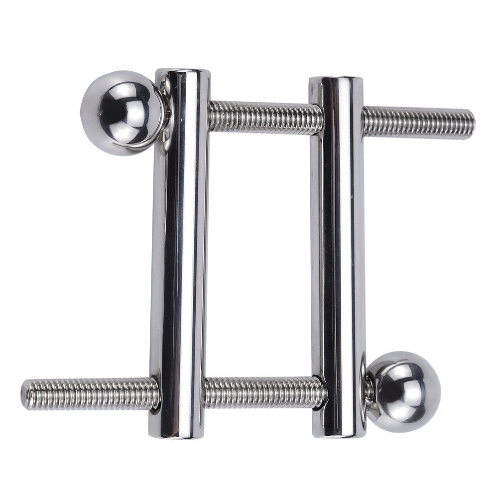 Una volta stabilito quanto stretta dovrà essere la presa sui testicoli, basterà avvitare le due barre filettate alle due forate, lasciando così il sottomesso con pressione e peso costanti sui testicoli.